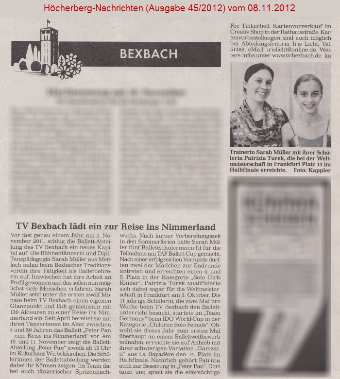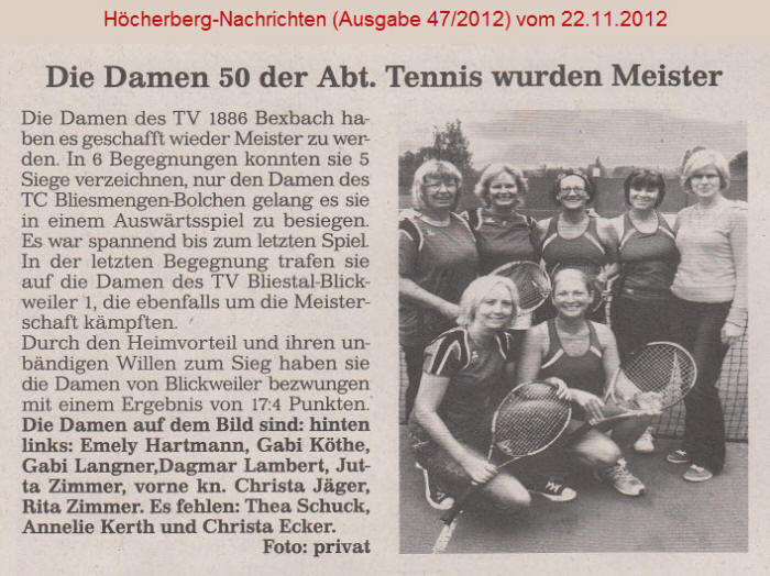 Ältere Presseberichte befinden sich im Archiv des TV Bexbach
