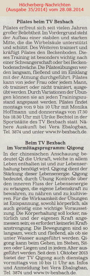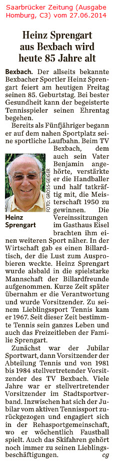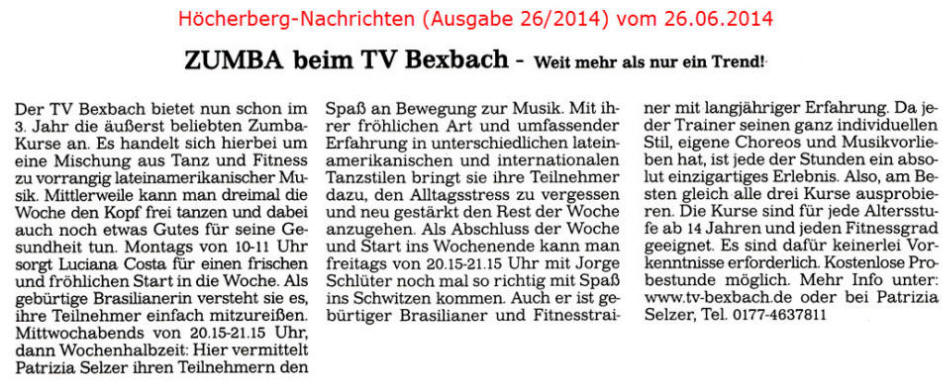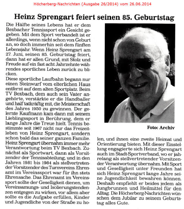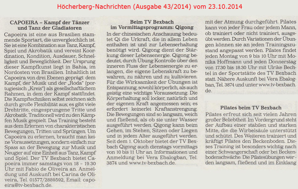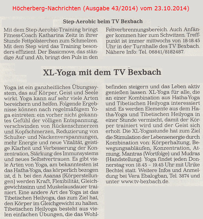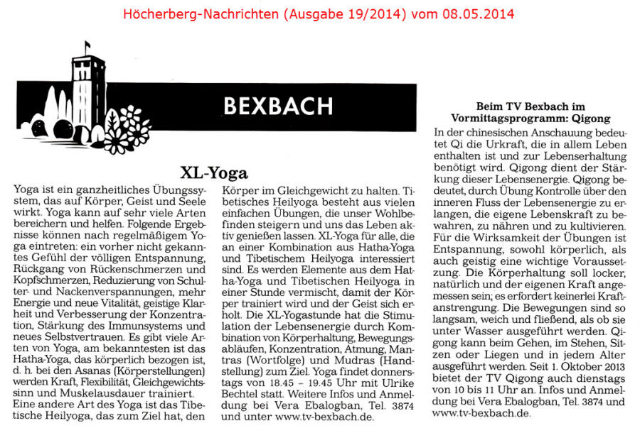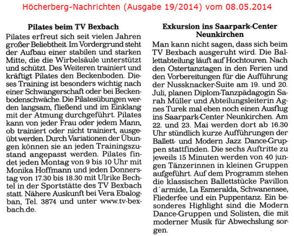 Ältere Presseberichte befinden sich im Archiv des TV Bexbach