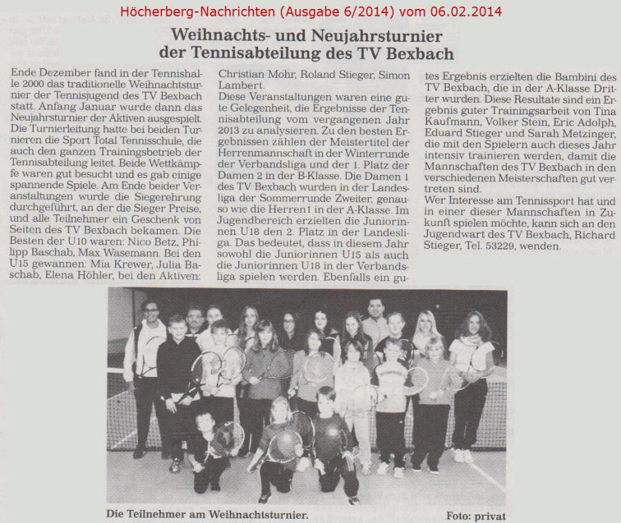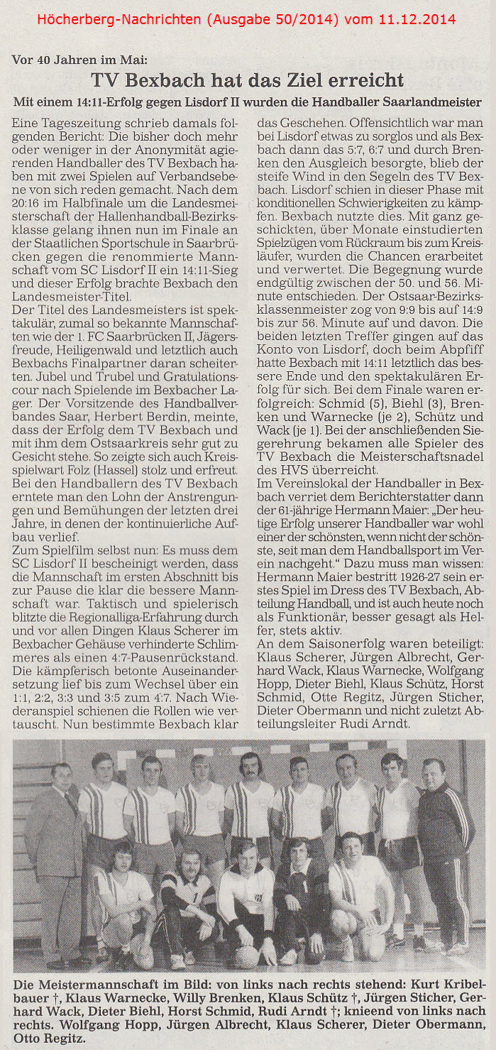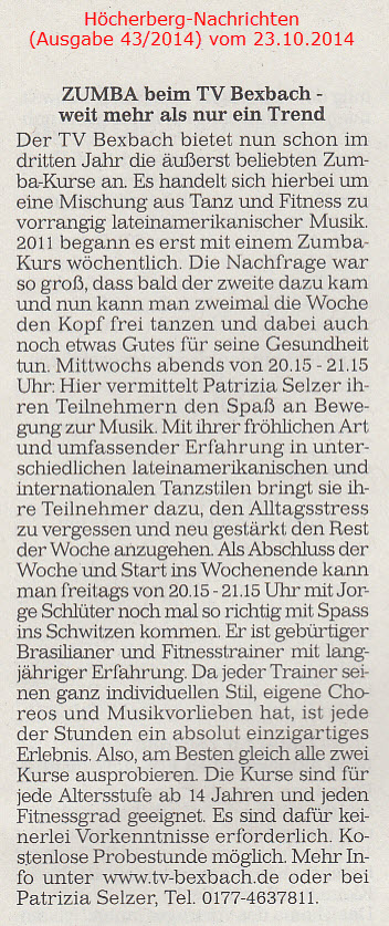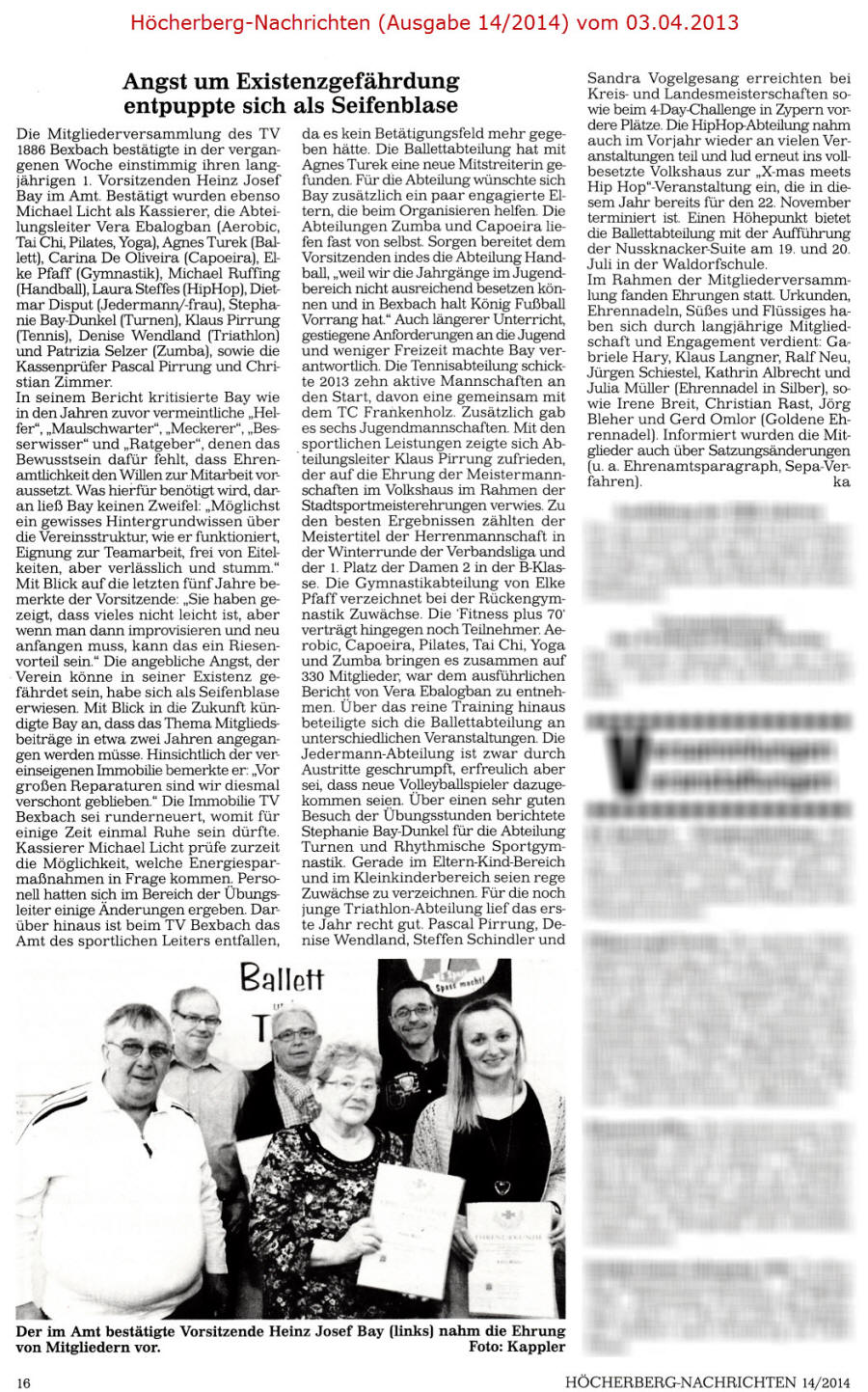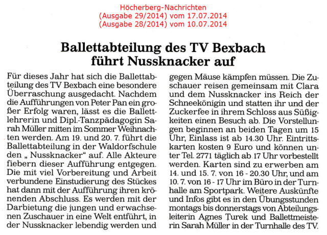 Ältere Presseberichte befinden sich im Archiv des TV Bexbach