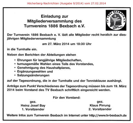 Rückfragen unter  mail@tv-bexbach.de
